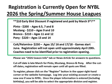 NYBL Spring House Baseball Registration is OPEN!